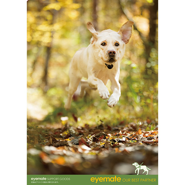 ◆写真は、<A.ソファに並ぶ子犬たち><B.紅葉の森を疾走する若い候補犬>です。クリア面の一部にも写真が入っています。